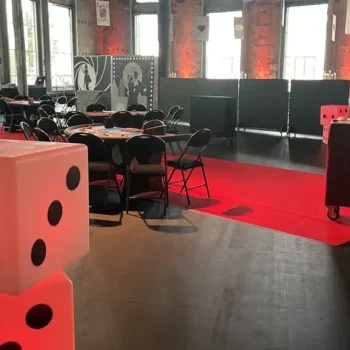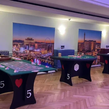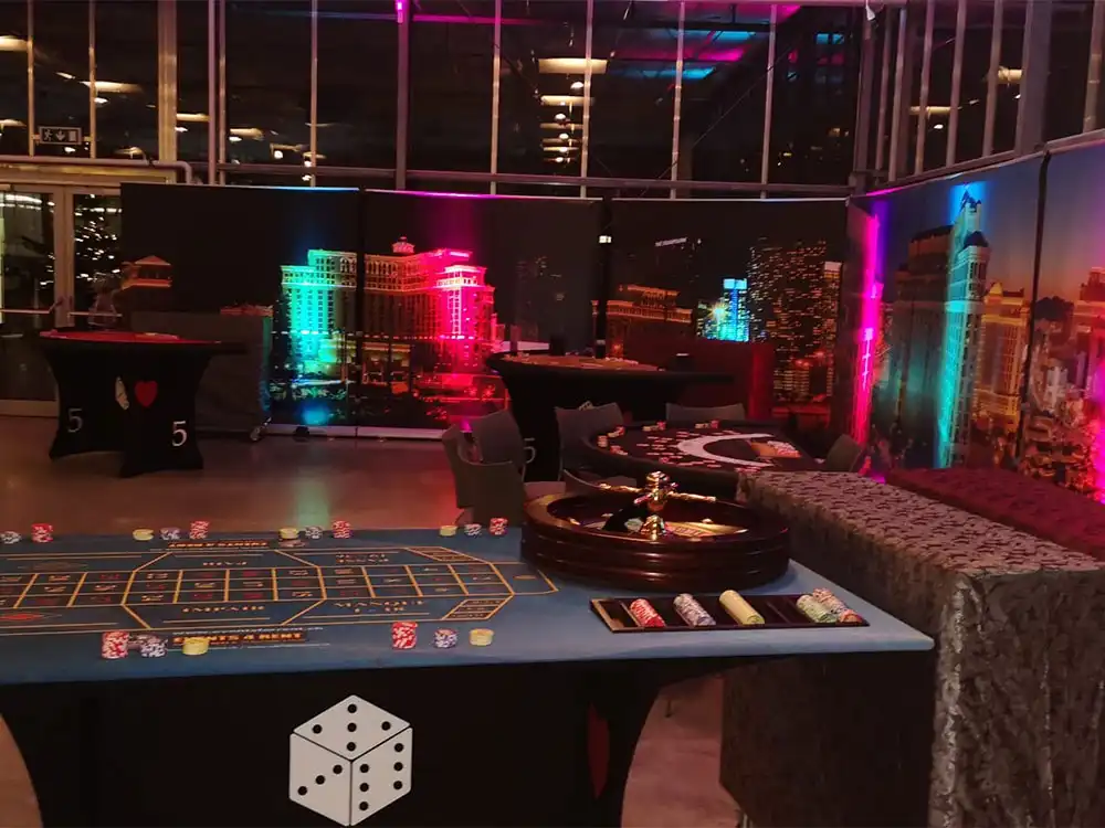 Unser Eventcasino katapultiert Sie und Ihre Gäste in die glitzernde und aufregende Welt von Las Vegas. Unsere den Originalen nachempfundenen Spieltische sind innerhalb weniger Minuten einsatzbereit und wirken bereits ohne weitere Dekorationselemente. Sollten Sie jedoch das Komplettpaket bevorzugen, stehen Ihnen beispielsweise unsere LED-Sitzwürfel, diverse Spielautomaten und Maxi-RollUps zur Verfügung. Diese Elemente lassen jeden Raum erstrahlen und sorgen für ein Ambiente das seines gleichen sucht.
